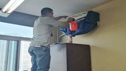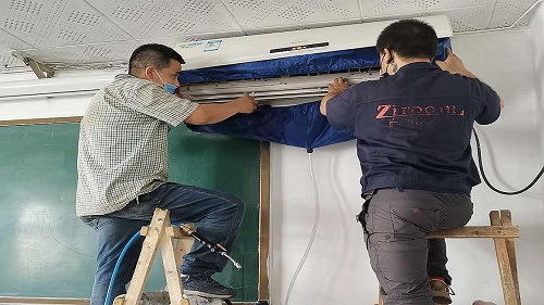 经综合询价和资质比较后,校区选用一家专业公司承接空调清洗消毒作业,自6月10日开始对老旧空调进行为期3天集中清洗、消毒。专业人员通过使用专用设备、清洗剂对空调关键部件进行高温高压清洗杀菌。目前整改任务基本完成,所有空调均已达到安全使用标准,有效防止了细菌滋生传播,确保教职工健康安全。