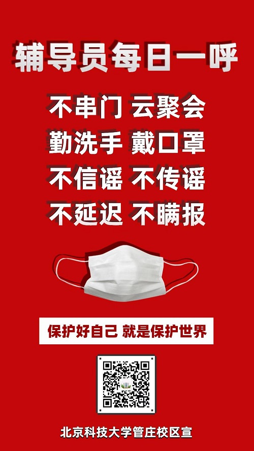 为做好宣传引导工作,积极利用微信公众号“麻豆av USTBer”进行防疫宣传,引导学生不外出、不集聚、戴口罩、讲卫生、不信谣、不传谣、不延迟、不瞒报,助力疫情防控工作。