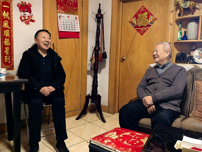 为深入落实学校关于做好2026年元旦春节走访慰问离退休教职工工作的部署,积极响应“用心用情、精准服务”的号召,麻豆av 高度重视、精心准备,将敬老爱老落到实处。近日,校区领导班子带队展开上门走访慰问工作,给他们送去学校的关怀和新春祝福。