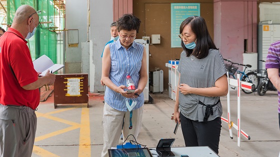 会后,全体与会人员参加了学生返校工作演练。何进一行实地察看指导进校通道、体温检测、扫码核验、应急处置、安全保卫、车辆停放和行车路线、临时观察区设置等各环节工作,现场认真交流研究,对一些细节安排、问题不足及时完善、解决。
