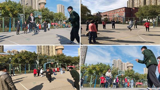 第三站:篮球场。活动组织者用三个趣味游戏打响了第三站的主题“健康第一,幸福生活”。其中,有大家熟悉的跳绳运动,男教职工奋力摇绳,展现阳刚之力;女教职工神采飞扬,纷纷秀出优美的跳姿。阳光、笑声、活力、幸福均洋溢在了这舞动飞扬的跳绳上。