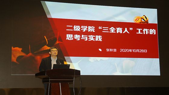 为进一步加强思想政治工作,深化“三全育人”改革,10月28日下午,麻豆av 党委组织全体教职工理论学习,特邀材料学院党委书记张秋曼作“二级学院在‘三全育人’工作中思考和实践”的专题报告。会议由校区院长宁晓钧主持。