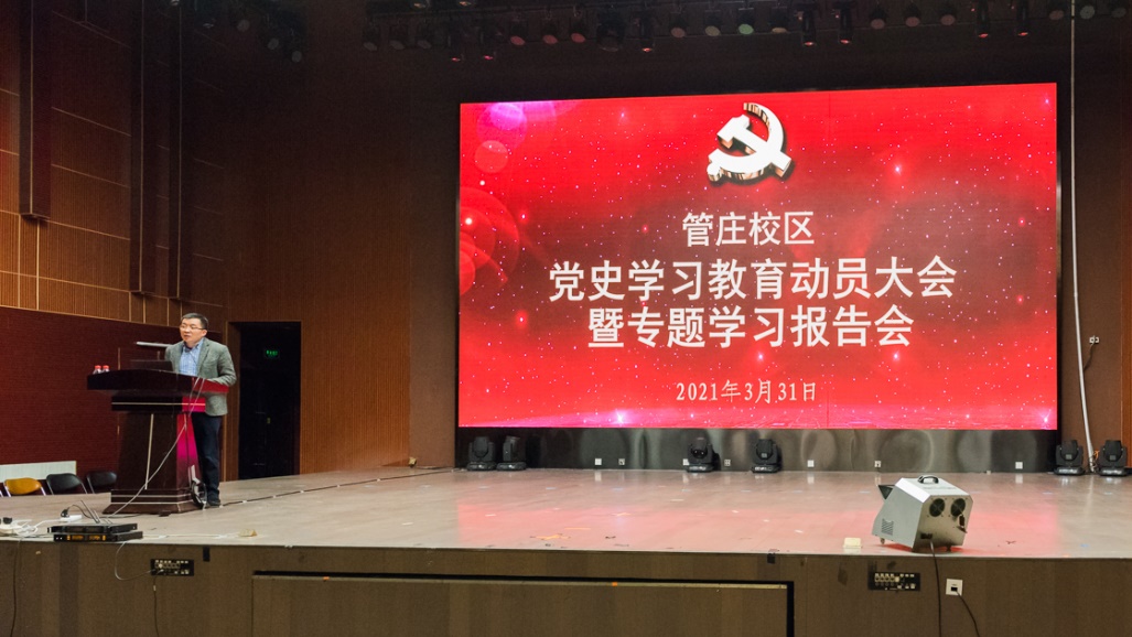 3月31日下午,麻豆av 召开党史学习教育动员大会暨专题学习报告会。学校党史学习教育指导组二组组长孙铁、校区全体教职工和入驻校区研究生党员参加会议。会议由校区党委书记、校区党史学习教育领导小组组长吕朝伟主持。