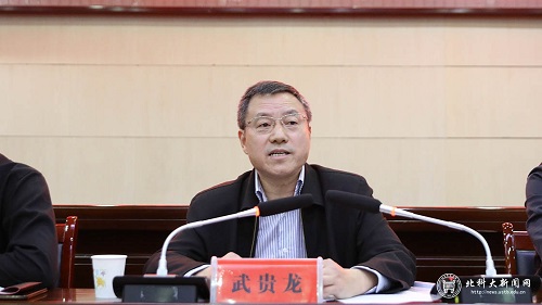 王东红向武贵龙一行的到来表示欢迎并感谢学校多年来的倾力帮扶。他在讲话中指出,双方要继续认真贯彻落实习近平总书记在决战决胜脱贫攻坚座谈会上的重要讲话精神,严格按照“四个不摘”要求,进一步做好今年定点扶贫工作,不断增进双方友谊,持续巩固扶贫成效,为全力迎接国家普查,补齐全面建成小康社会短板打好基础,确保全面小康路上不漏一户、不落一人。同时,他希望学校在未来的工作中进一步加大对秦安的宣传力度、不断加大就业与消费扶贫力度、继续加基层干部和各类技术人员培训、持续深化项目资源引进力度,持续助力秦安县高质量打赢脱贫攻坚战。