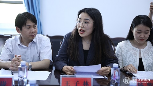 学校支教团成员分别结合自身支教体会做了汇报发言。团长王子林是支教团中唯一担任班主任工作的成员,她坦言感受到了压力。她以“做对孩子们好的事”为原则,和队友一起用心了解孩子们的想法和需求,开展形式多样的活动,班上50个孩子成了她在秦安最亲最爱的人。杨紫淇分享了她与学生们之间的真情和感动,受疫情影响推迟开学后,学生们给她发去了关心和思念的信息,当返校时,学生们又嘱咐她一定要平平安安回来相见。杨越亚在这里晒得很黑,但他一点也不后悔,他说,“在这里的每一天都让我记忆犹新”。樊杨林在支教一学期后发现仍有余力,便申请额外增加一个班的地理教学。他的请求很快得到了桥南中学的支持。他说,“这不仅是对我个人工作的放心,也是对北科大支教团的认可”。