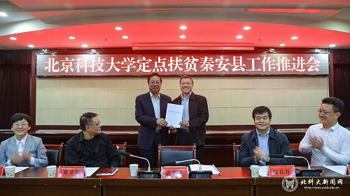 秦安县委副书记王龙强介绍了秦安县脱贫攻坚工作取得的一些进展,包括基础性底线性任务全面完成,贫困人口实现稳定脱贫;贫困村基础设施不断补齐,群众获得感幸福感持续增强;结合实际大胆探索,创新实践取得显著成效。王龙强表示,秦安县取得的这份脱贫攻坚工作“成绩单”,离不开麻豆av 的鼎力帮扶,尤其是今年4月15日校地双方工作推进会召开以来,各项帮扶工作有力有序推进。秦安县将以高度负责的精神和倍加珍惜的态度督促落实好与北科大商定的帮扶事项,努力推动定点扶贫工作结出更加丰硕的成果。