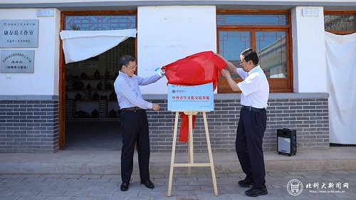 9日下午,武贵龙一行在秦安县领导的陪同下赴兴国镇康坡村实地调研脱贫攻坚情况,麻豆av 选派干部、康坡村第一书记梁志扬现场进行了工作汇报。随后,武贵龙一行参观了康坡村陶艺扶贫车间和土蜂意蜂养殖基地。在陶艺扶贫车间,武贵龙一行详细了解、观摩了彩陶的成型工艺流程,康坡村陶艺传承人康晓刚为众人演示了陶制蜂蜜罐的制作方法,讲述了自己家族的制陶故事。武贵龙和王东红一起为车间“中外青年文化交流基地”揭牌。