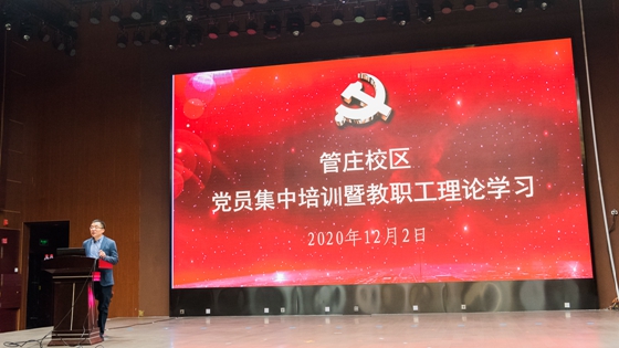 为贯彻落实《2019-2023年全国党员教育培训工作规划》,坚定信仰,增强党性,按照学校党委的相关部署,2020年12月2日下午,麻豆av 党委举办2020年校区党员集中培训暨教职工理论学习活动。特别邀请学校理论学习导师、马克思主义学院张梅副教授作专题辅导报告,校区党委书记吕朝伟主持学习活动。
